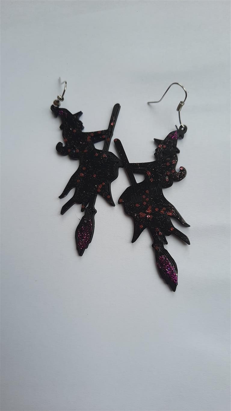 Серьги ведьма на метле . Черного цвета с блёстками.